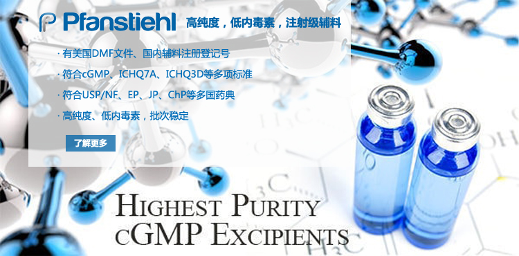 “熱烈祝賀Pfanstiehl的注射級甘氨酸Glycine(G-140)喜獲CDE登記號F20250000403, 這是Pfanstiehl產品獲得的第18個CDE登記號!”甘氨酸在醫藥輔料制劑中應用廣泛,, 可作為緩沖劑,增溶劑,穩定劑等,具有諸多優勢。Pfanstiehl秉承一貫高品質理念,為滿足全球生物制藥行業對于高品質甘氨酸的需求,隆重推出的注射級甘氨酸Glycine (G-140), 具有超高純度,超低內毒素,超低金屬殘留的特點,單獨檢測29種金屬離子,并且新增DNA,RNA,DNA酶,RNA酶和脂肪酶,亞硝酸鹽等多項質量指標的檢測,符合多國藥典規定(USP, EP, BP, JPE, ChP),可用于生物治療性藥物和疫苗的生產。產品信息:· 產品名稱:Glycine, High Purity, Low Endotoxin, Low Metals, USP, EP, BP, JPE, ChP (G-140)· 中文名稱:甘氨酸· 分子式:C2H5NO2· 分子量:75.07 g / mol· CAS號:56-40-6· 產品貨號:G-140產品特點: · 超高純度,超低內毒素,超低微生物含量,超低金屬雜質殘留· 質量指標新增DNA,RNA,DNA酶,RNA酶,脂肪酶和亞硝酸鹽檢測· 符合多國藥典:USP, EP, BP, JPE, ChP· 符合ICH Q3D標準· 符合GMP標準· 已獲DMF和CDE登記號 產品應用:· 緩沖劑· 穩定劑· 增溶劑如果您對Pfanstiehl注射級別Glycine G-140感興趣,歡迎聯系Pfanstiehl 中國區代理商北京西美杰科技有限公司獲得如下詳細的產品概況說明文件和測試樣品。Pfanstiehl Inc.最新產品系列如下,歡迎聯系北京西美杰科技有限公司獲取100g裝免費樣品。北京西美杰科技有限公司為Pfanstiehl中國代理,為客戶提供完善的技術支持與售后服務。歡迎撥打西美杰客服電話400-050-4006或者登陸網站www_xmjsci_com.tofnews.com了解更多信息。 更多>
